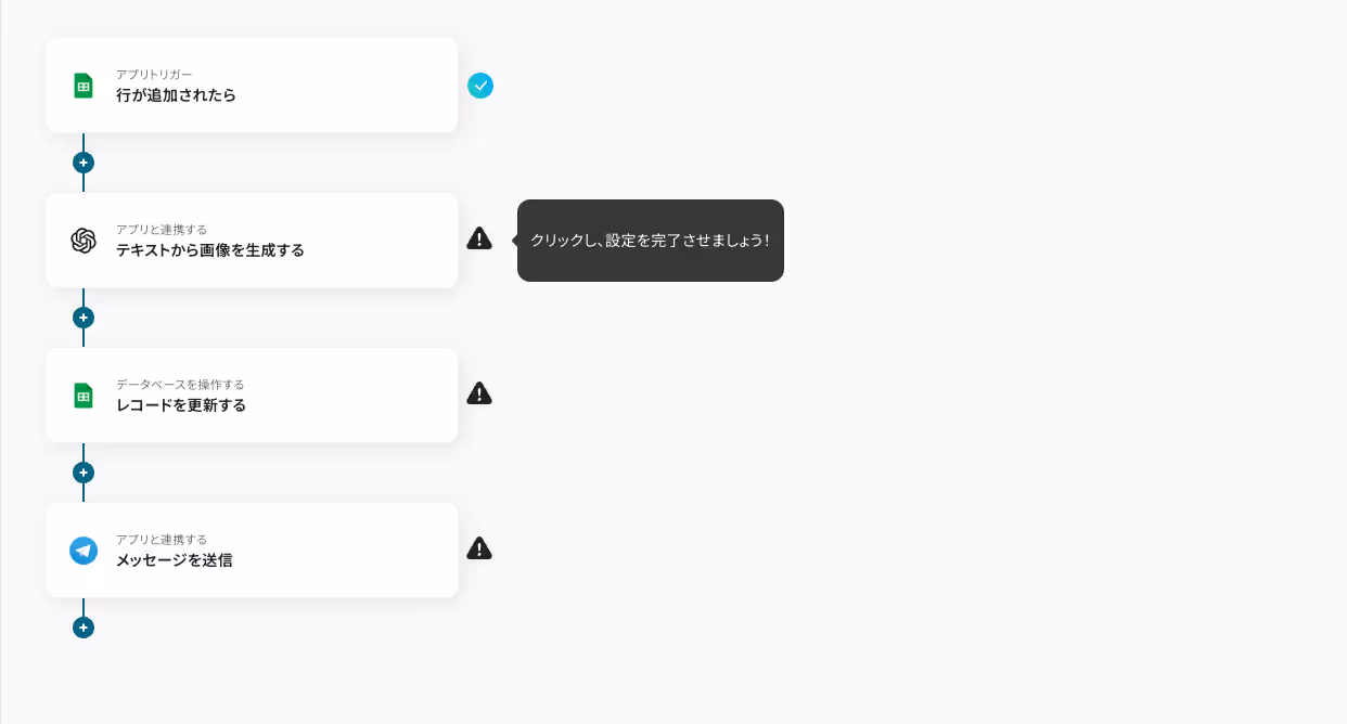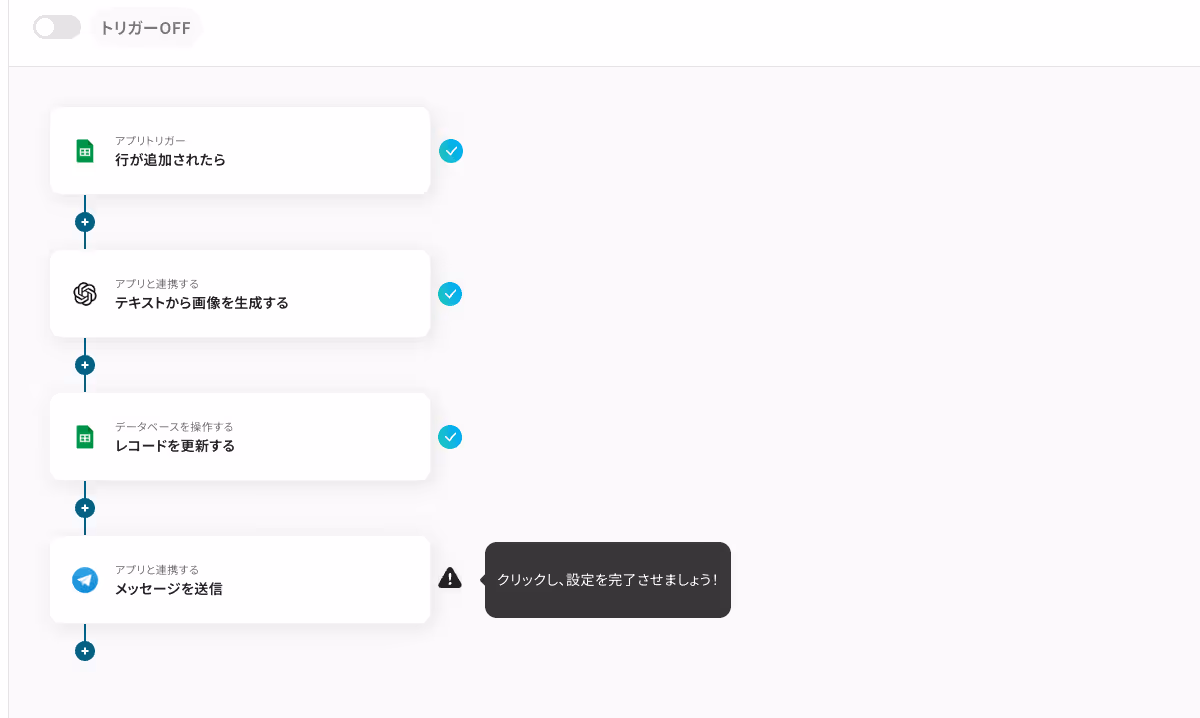 今回は「Google スプレッドシートで行が追加されたら、OpenAIで画像を生成しTelegramで通知する」フローを作成していきます!