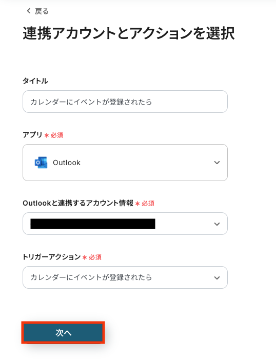 ステップ3: Outlookのトリガー設定
