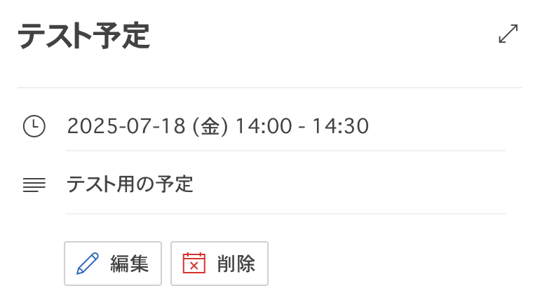 テストに成功すると、Outlookでカレンダーに登録されたイベントに関する情報が一覧で表示されます。