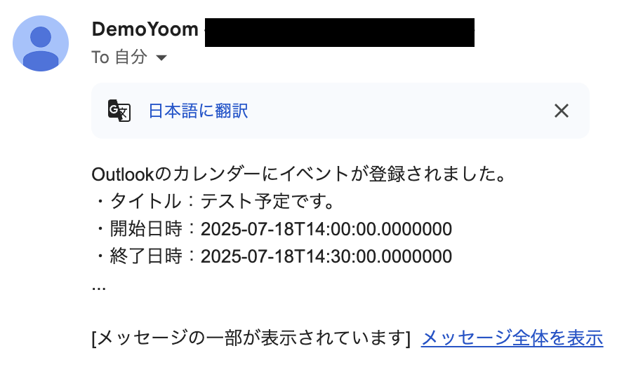 実際にOutlookでイベントを作成し、指定したメールアドレスに通知が届くかを確認してみましょう。