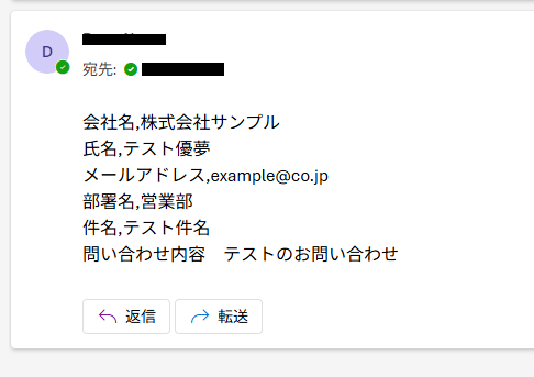 テスト用のため、メール内容は架空の情報(「株式会社test」や「テスト太郎」など)でOKです!