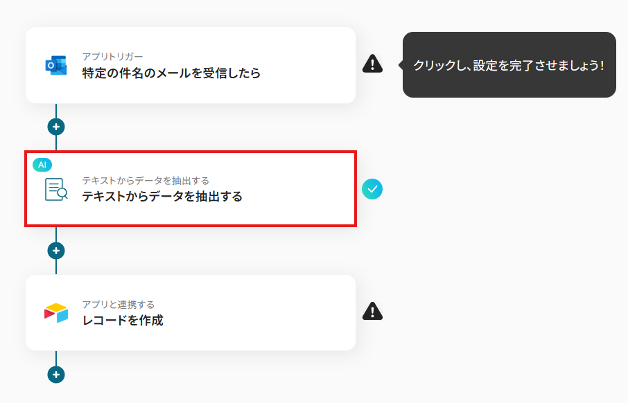 ここで抽出したテキストデータを用いてAirtableにデータを追加するため、Airtableに追加したい項目を全て設定するようにしましょう。