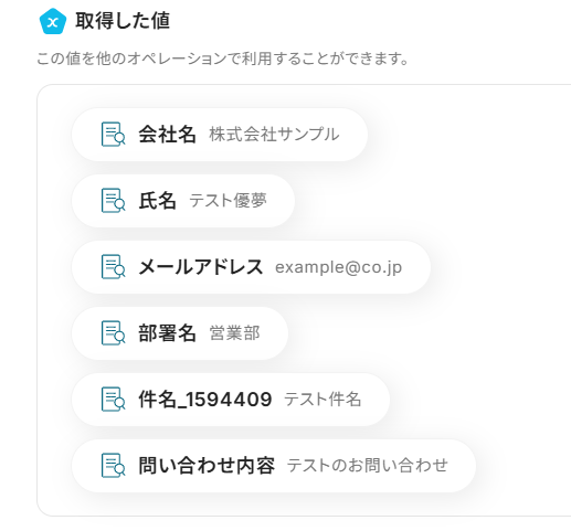 取得した値は、後続の設定で活用できます!