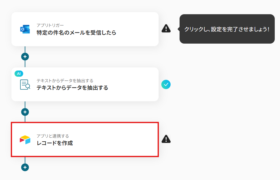 1.アプリと連携する「レコードを作成」をクリックしましょう。