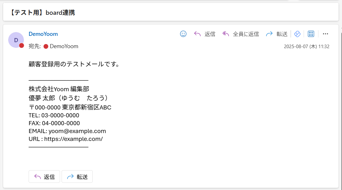 Outlookで受信した内容をもとに、boardに顧客を登録する