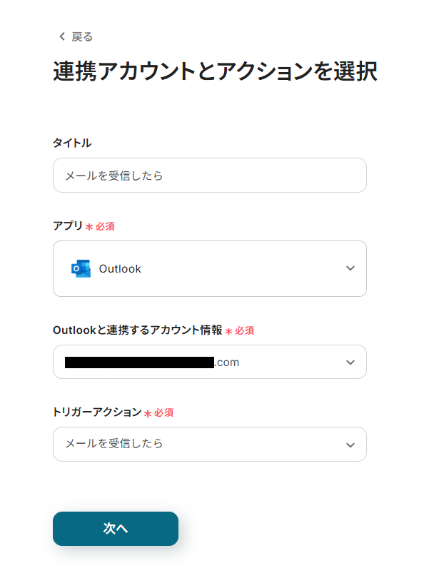 - 連携したいアカウントを入力し、「次へ」をクリック。
