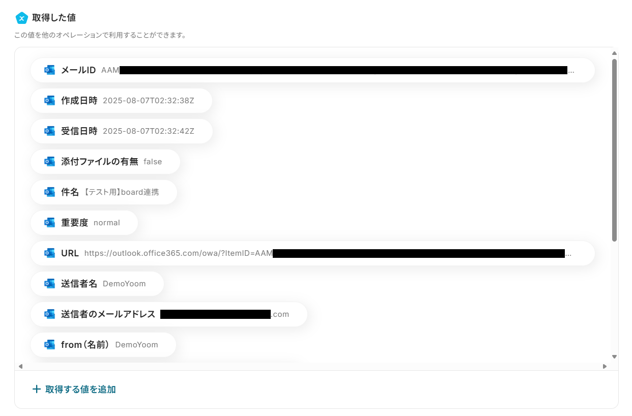 Outlookで受信した特定条件のメール内容をもとに、boardに顧客を登録する