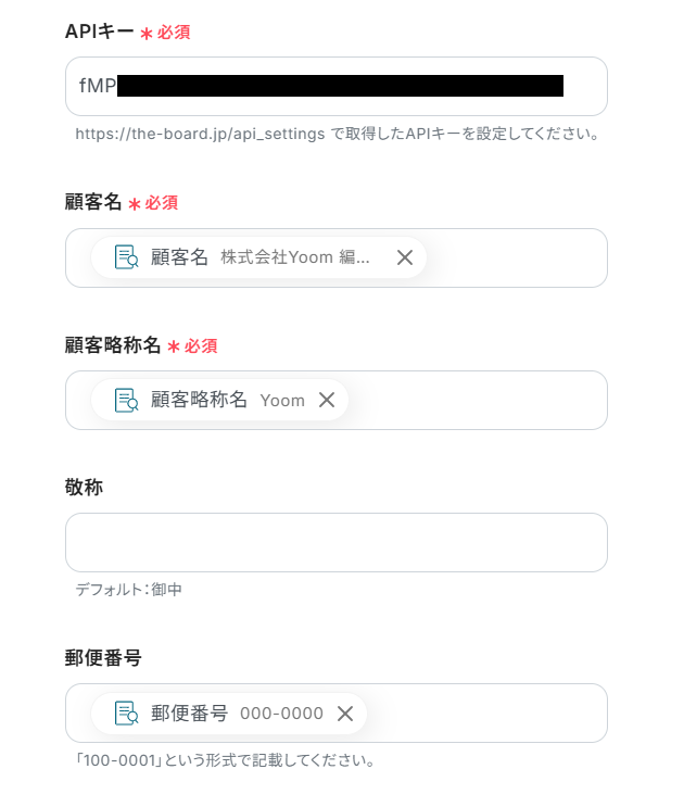 「APIキー」もboardの顧客登録アクションで使用するため、コピーしておきましょう。