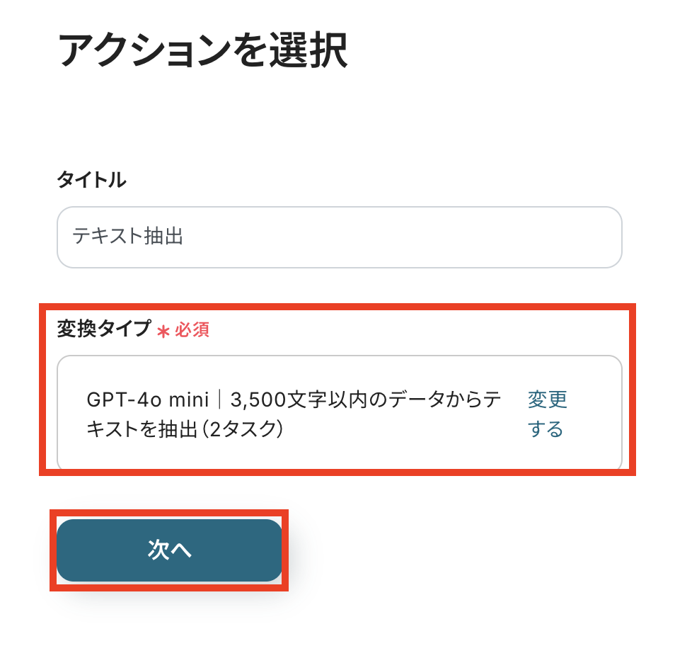 ※今回は、3500文字以下のデータを処理するためこちらの変換タイプを設定しています。