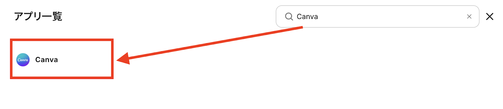 2.検索ボックスに「Canva」と入力し、左上のCanvaのアイコンをクリックします。