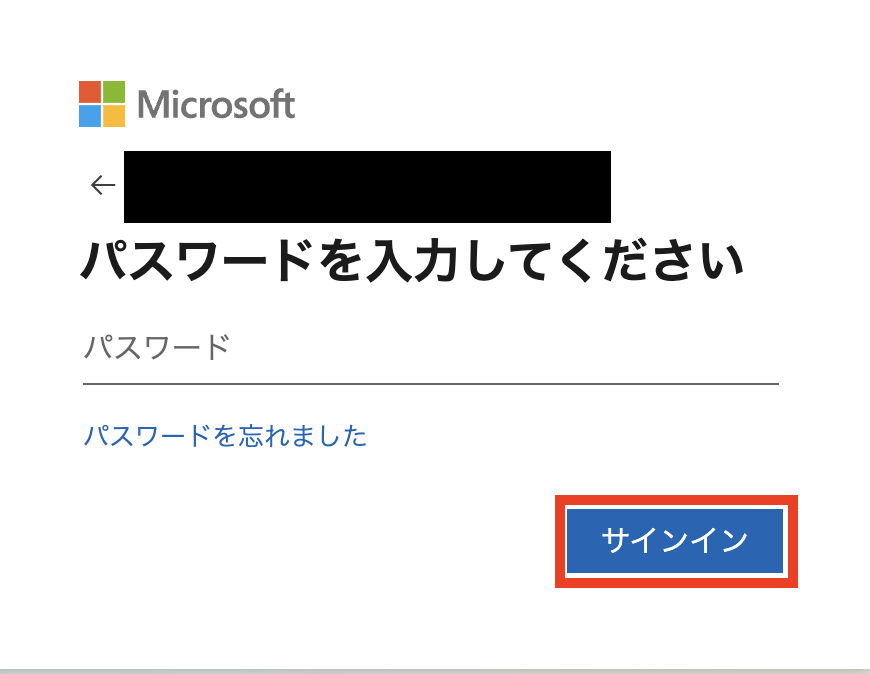 3.アカウントのパスワードを入力して、「サインイン」をクリックします。