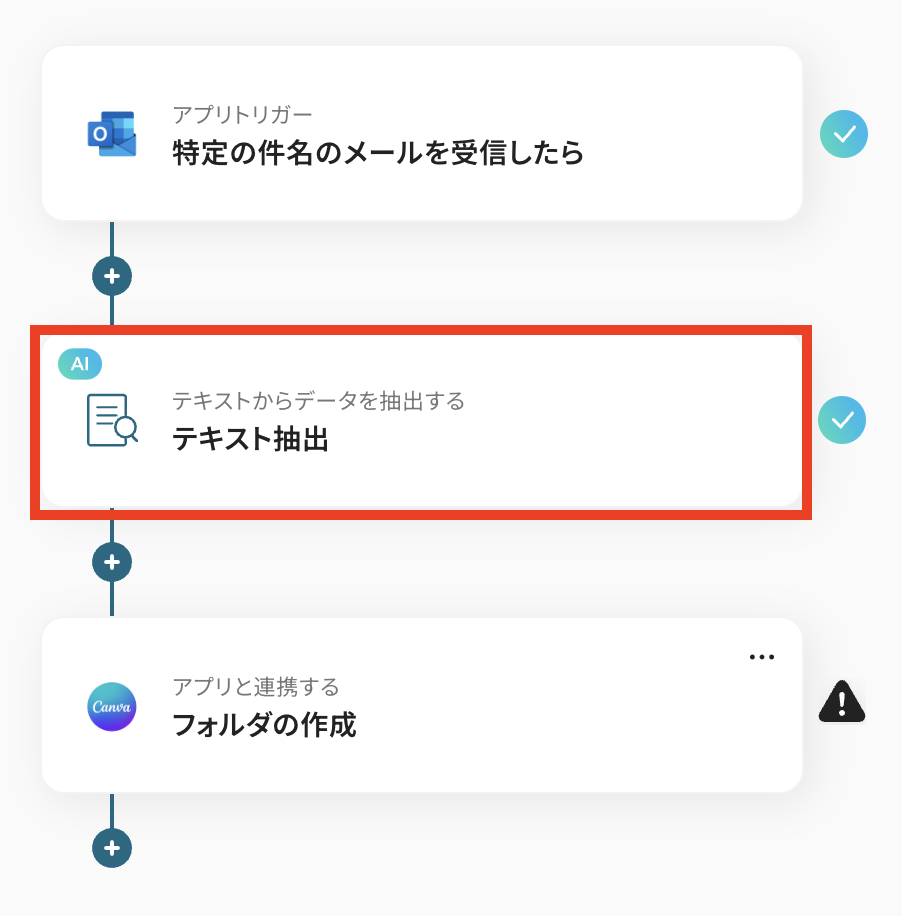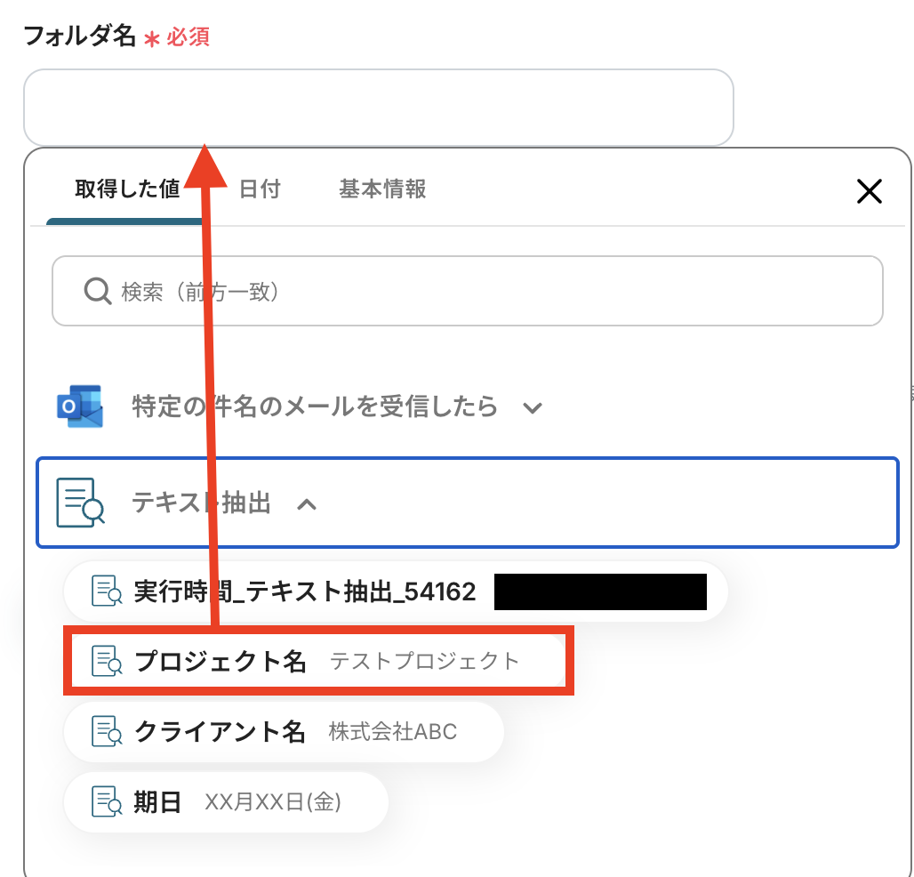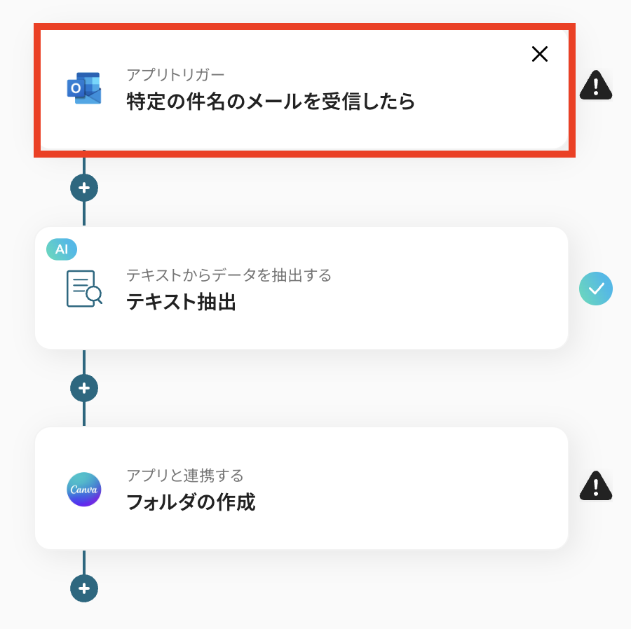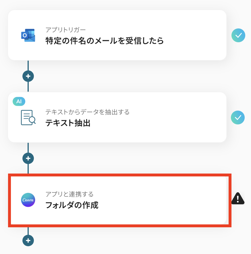 この連携を設定することで、メールの件名に含まれるプロジェクト名やクライアント名を自動で抽出し、Canva内に適切な名称のフォルダを即座に作成できます。