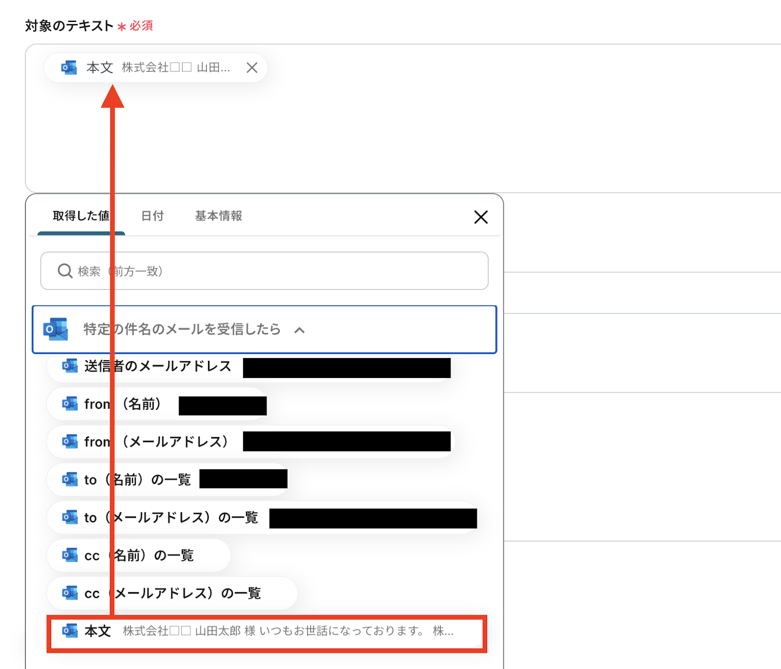 このキーワードが件名に含まれる場合にのみフローボットが稼働します。