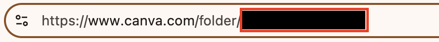 特定のフォルダ内にフォルダを作成したい場合は、Canvaを開いた際に上部に表示されるURLの部分からフォルダIDを設定できます。