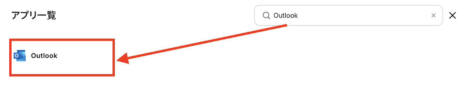1.右上にある検索ボックスに「Outlook」と入力して、表示されたOutlookのアイコンをクリックします。