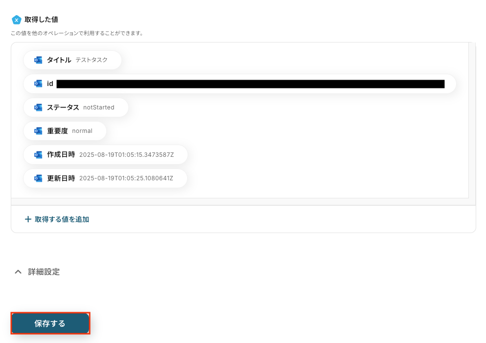 たとえばOutlookから取得した情報を活用したり、固定値を指定したりすることで、タスク作成と同時に担当者の割り当てや期日の登録まで自動化することが可能です。