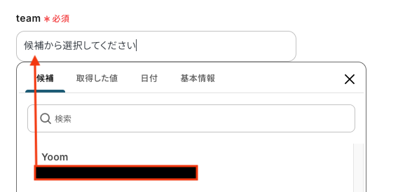 - ClickUpでタスクを作成するアクションでは、タスクを追加したいTeam、Space、Folder、Listなどを任意で設定してください。