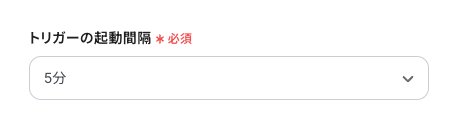 - トリガーは5分、10分、15分、30分、60分の間隔で起動間隔を選択できます。