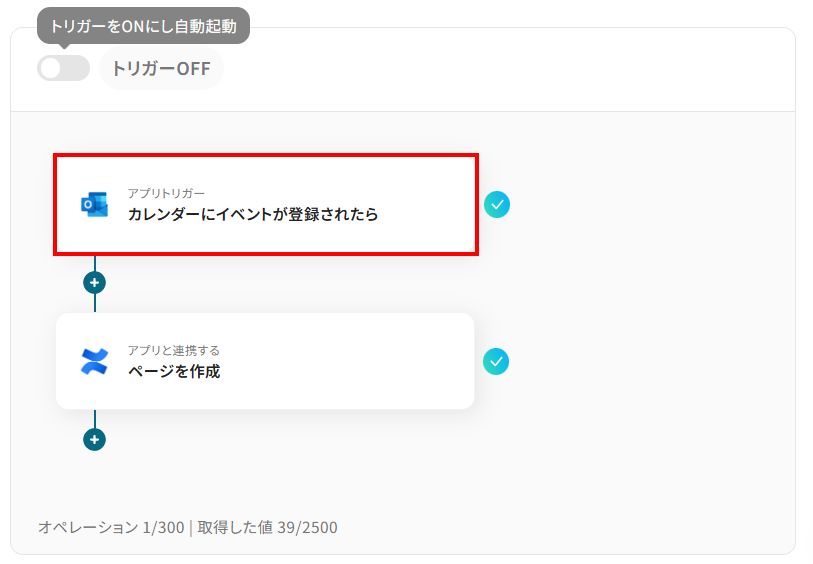 はじめに、OutlookとConfluenceをYoomと連携します。 次に、トリガーでOutlookを選択し、「カレンダーにイベントが登録されたら」というアクションを設定します。 最後に、オペレーションでConfluenceの「ページを作成」アクションを設定し、Outlookのイベント情報を元にページが作成されるように設定します。 ※「トリガー」:フロー起動のきっかけとなるアクション、「オペレーション」:トリガー起動後、フロー内で処理を行うアクション