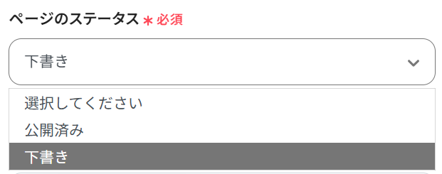 ページのステータス:プルダウンより、どちらかを選択しましょう。
