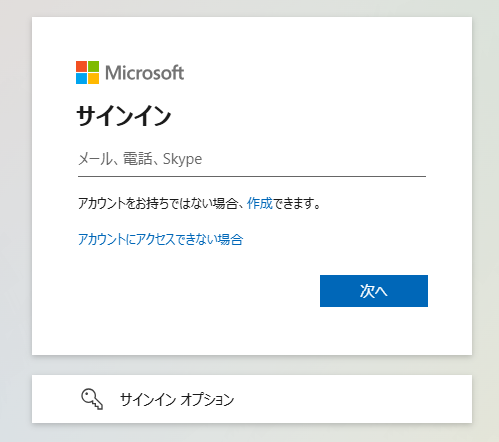 お手持ちのMicrosoftアカウントでログインを行ってください。