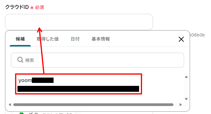 クラウドID:入力欄をクリックすると下記のような候補が表示されるので、対象のクラウドIDを選択してください。