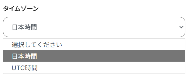 タイムゾーン:プルダウンから選択可能です。注釈を参考に選んでください。