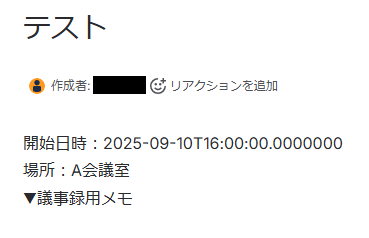この連携を使えば、イベントが登録されると同時に、会議名や参加者情報を含んだ議事録の雛形ページが自動で生成される ため、事前の準備時間を短縮し、ページの作成漏れといったミスも防ぐことが可能です。