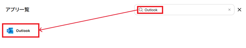 アプリ一覧の検索窓からOutlookを検索し、クリックします。