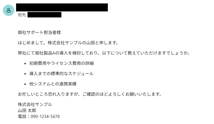 今回は「導入」というキーワードを入れたテストメールを作成しました。