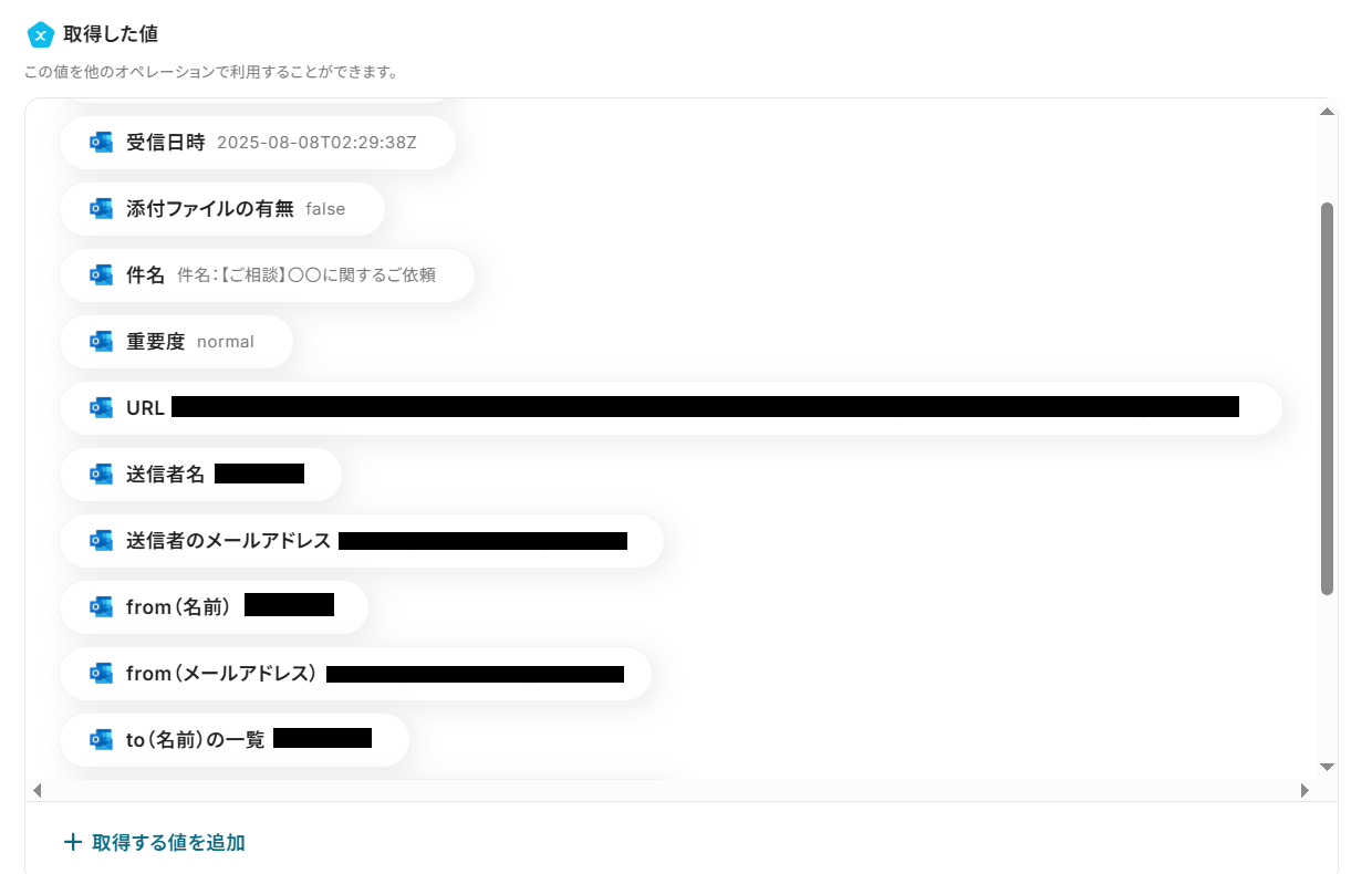 今回はそのまま使用しますが、先ほどと同様に取得した値を追加することも可能です。