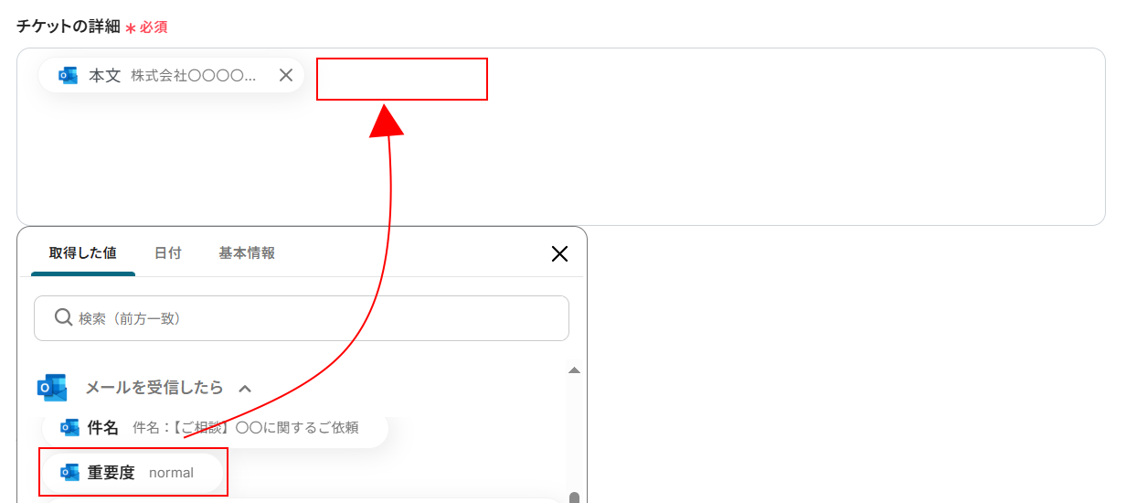 この自動化では、メールの送信元や件名などの条件を指定できるため、重要な問い合わせだけを自動で抽出し、効率的にチケット化することが可能になり、対応の優先順位付けがスムーズになります。