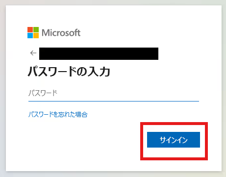 下記の画面が出ましたら、アカウントのパスワードを入力しサインインしてください。