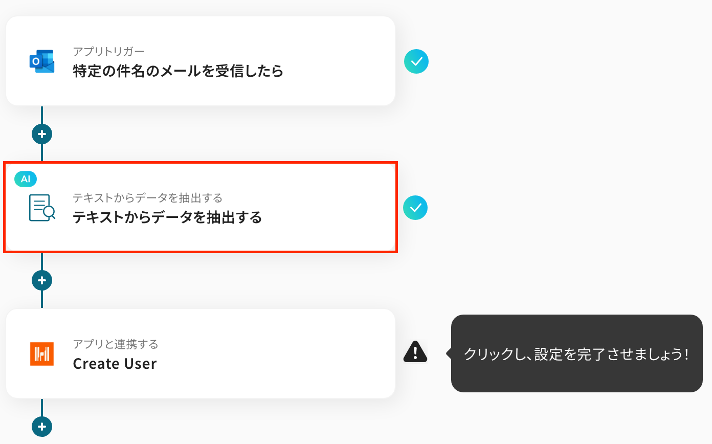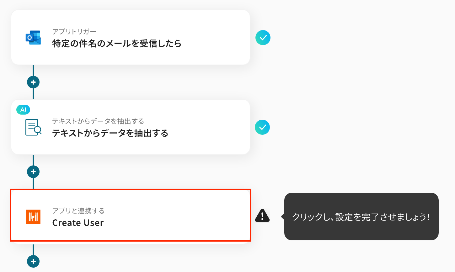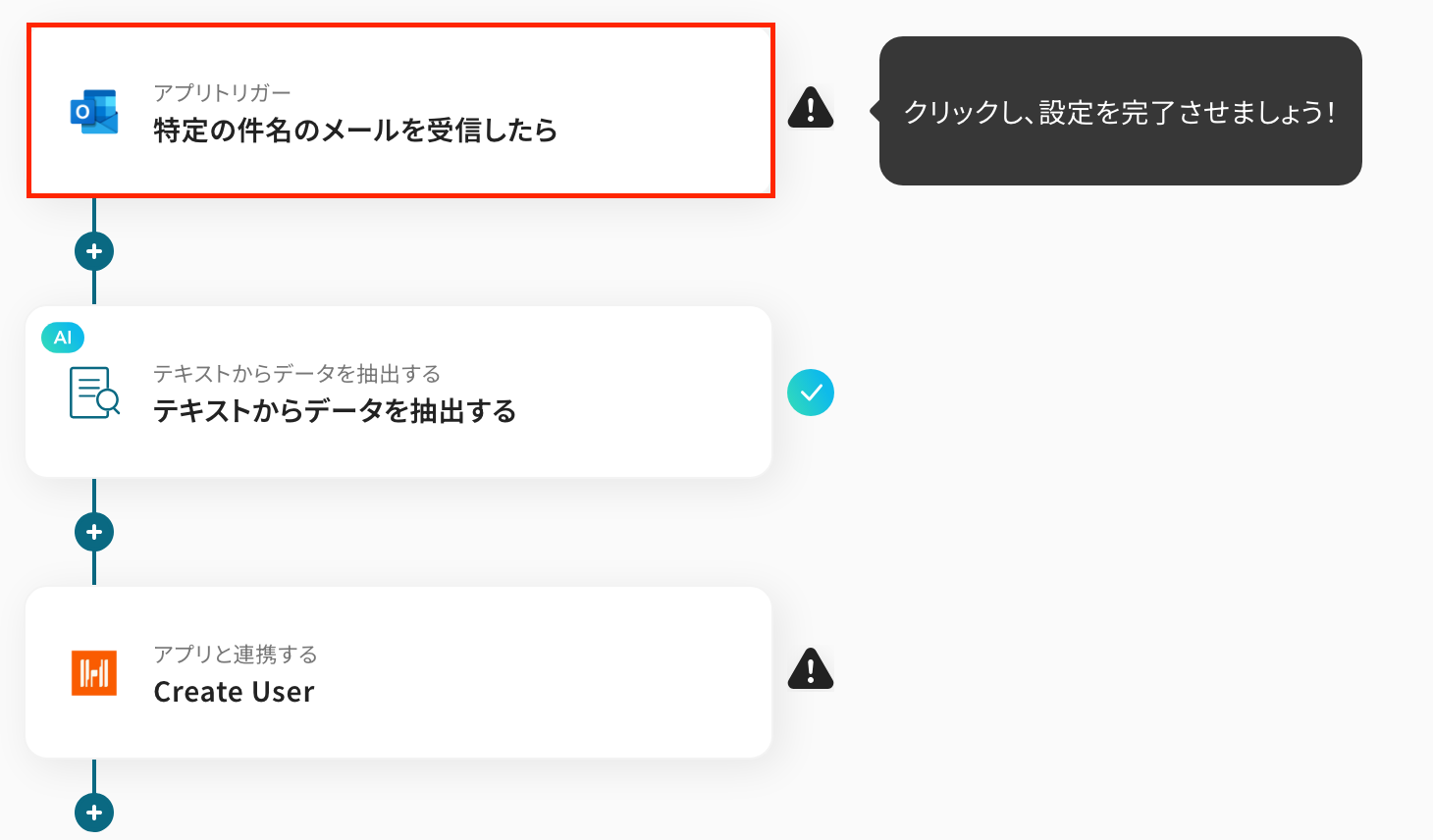 例えば件名に「ユーザー追加依頼」と含まれる場合にのみフローを先に進める、といった活用も可能です。