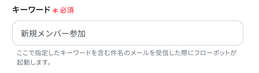 ※ここで指定したキーワードを含む件名のメールを受信した際にフローボットが起動します。