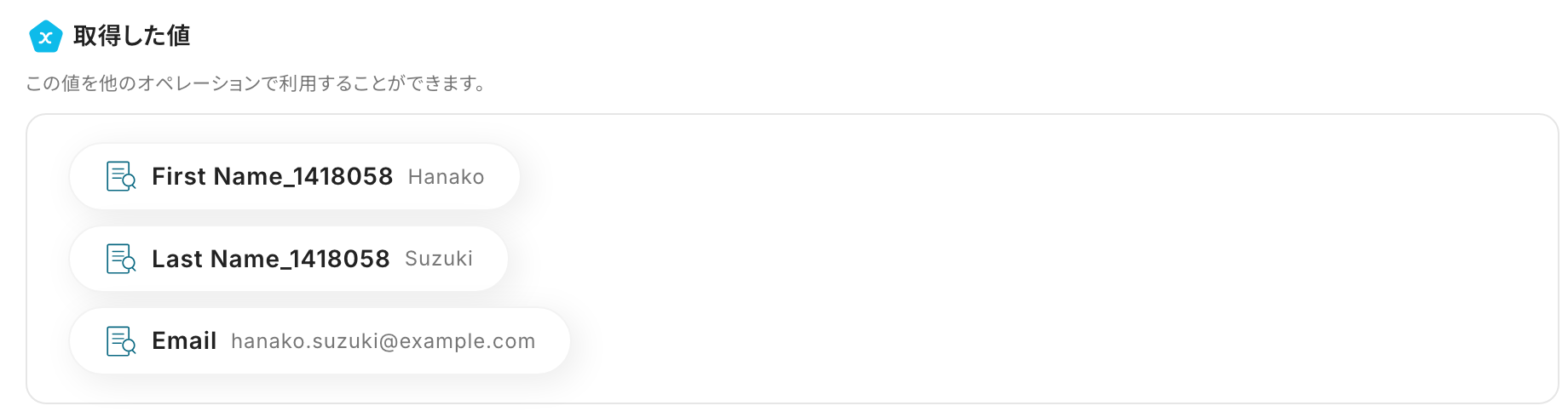 後続のオペレーション設定時の値として利用でき、フローボットを起動する度に変動した値となります。