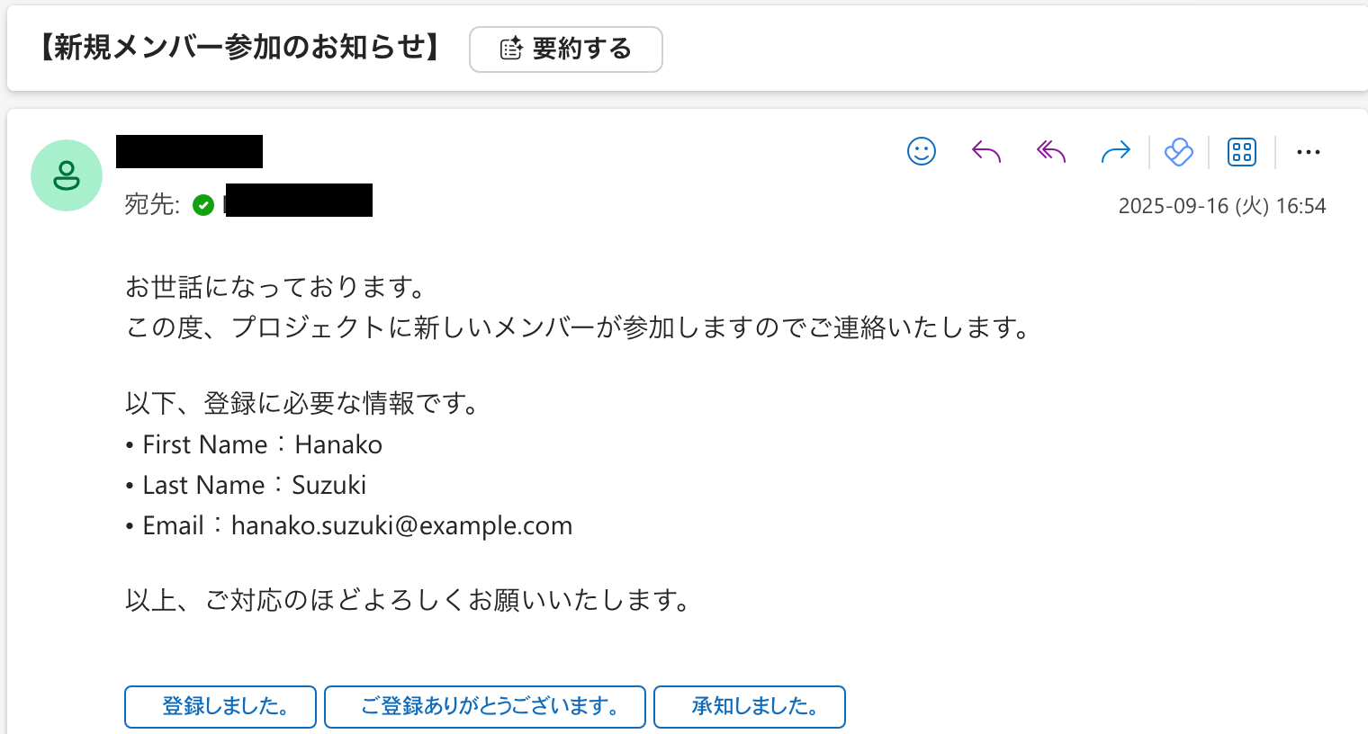 ・Outlookで受信した連絡をもとにメンバー情報を管理しており、入力の手間を削減したいチームリーダーの方