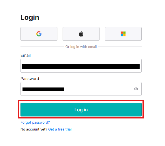 次の画面で、メールアドレス・パスワードを入力し、「Log in」をクリックしましょう。