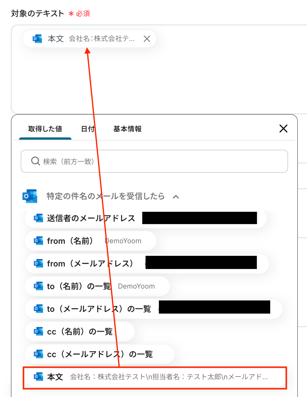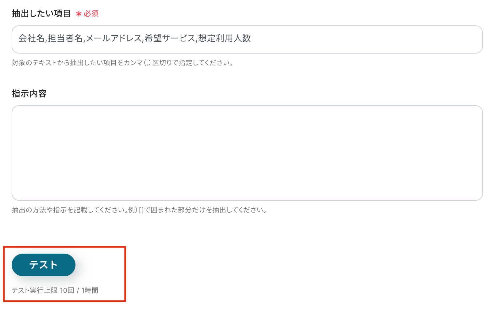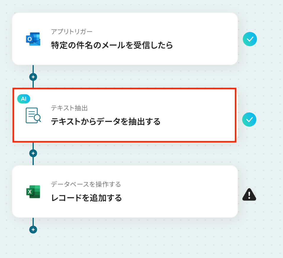 受信したメールの内容から必要な情報を自動で取り出す設定をします。