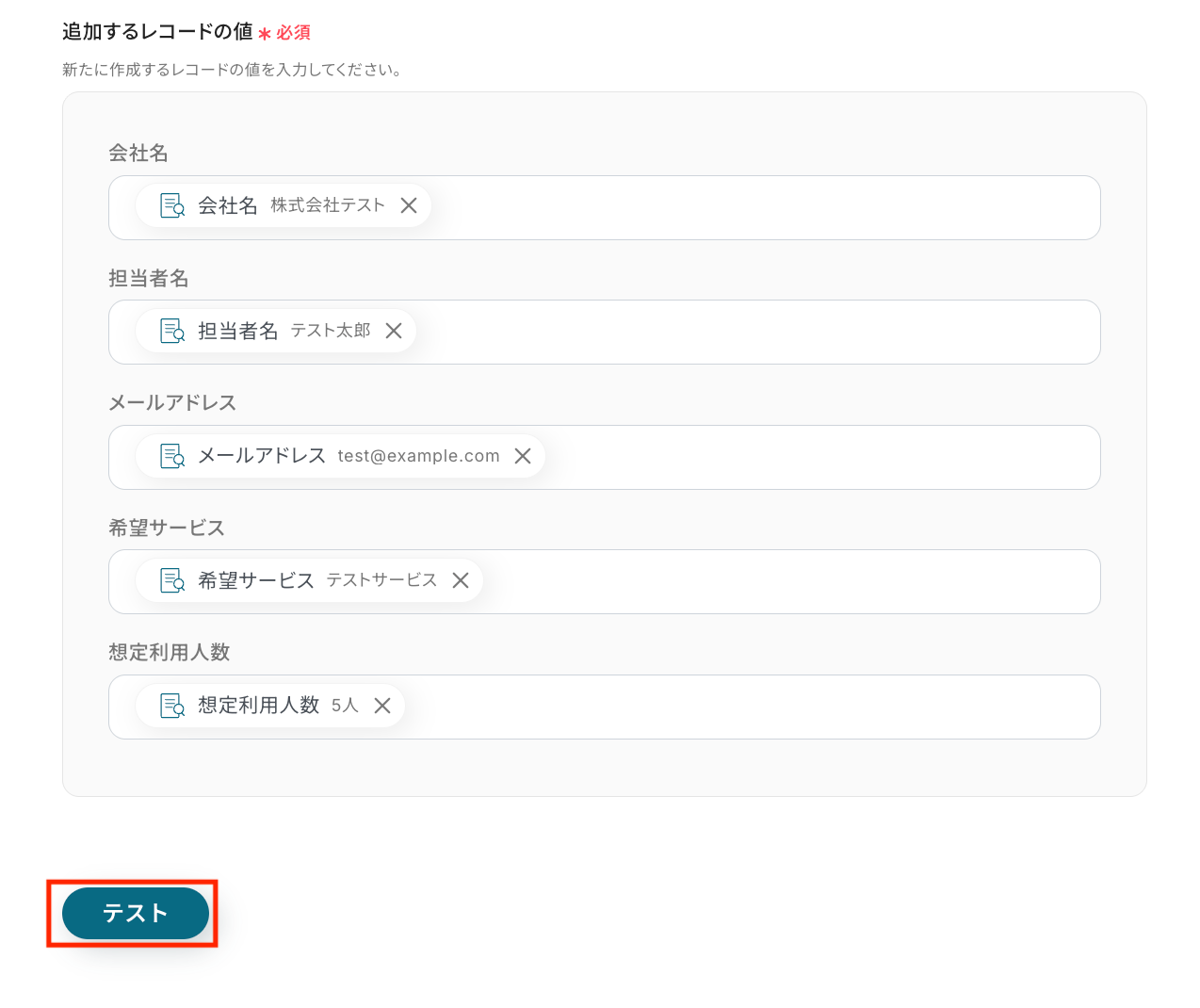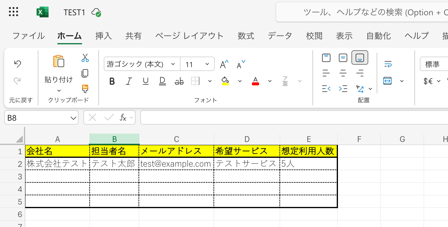 テストを行い、Microsoft Excelにデータが追加されるか確認します。