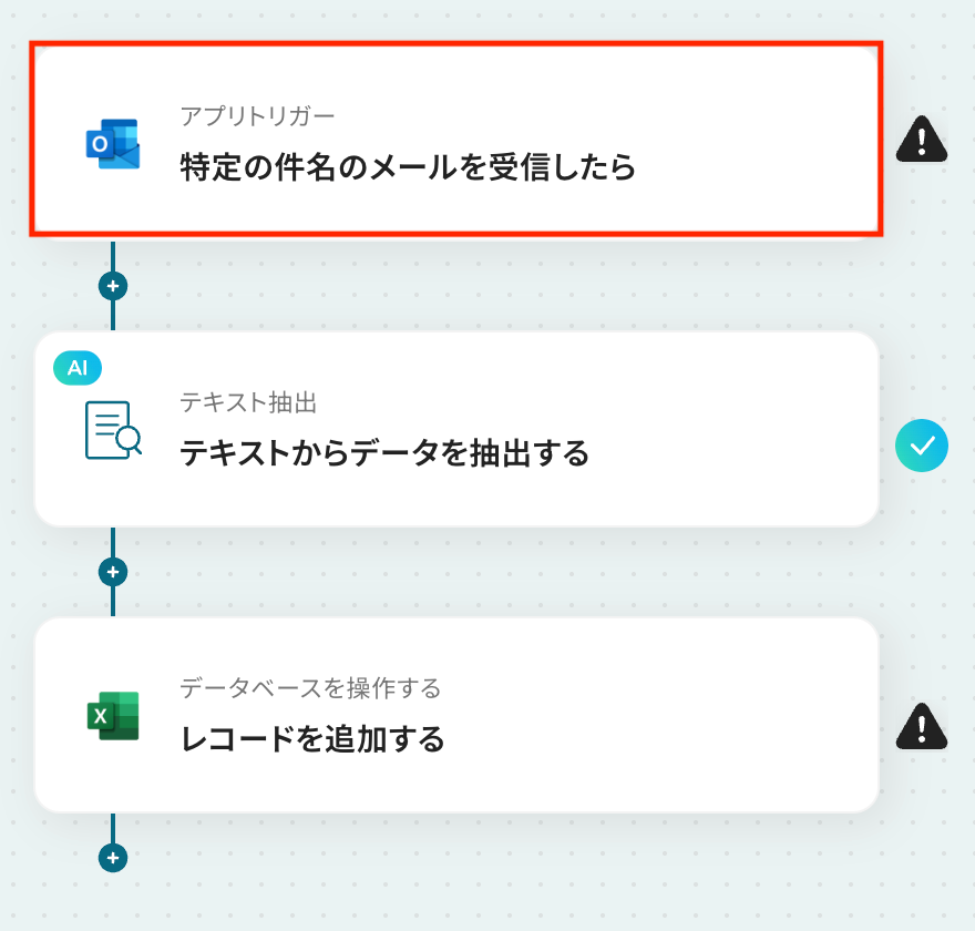 それではここから代表的な例として、Outlookで特定件名のメールを受信した際に、その内容をMicrosoft Excelに自動で追加するフローを解説していきます!