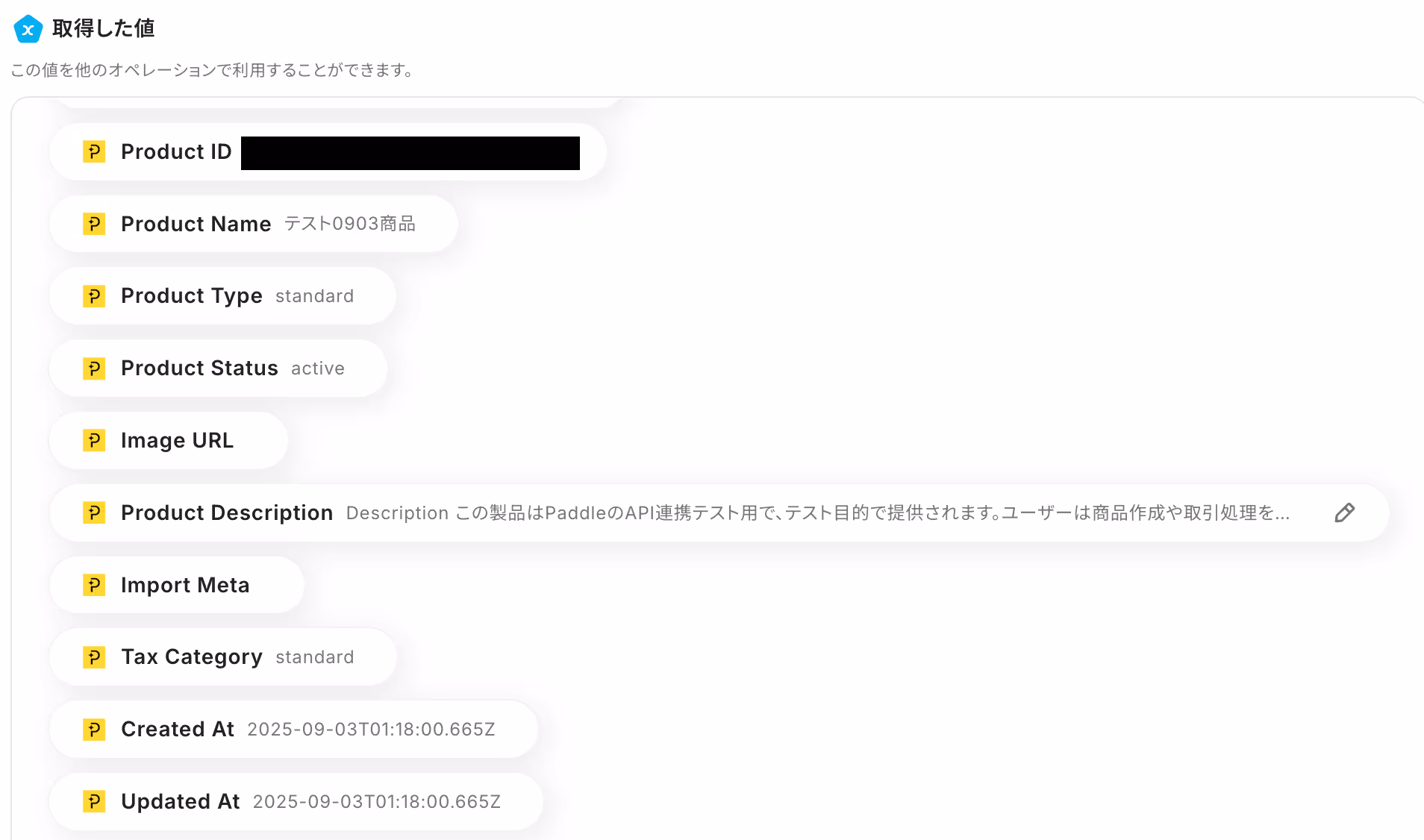 設定後、Paddleでトリガーとなるイベント(Product Created)を実行します。