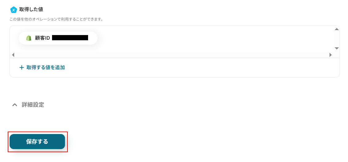 取得した値はこのあとの設定でも使用します。