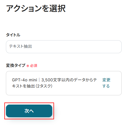 変換タイプは今回は現在設定されている「GPT-4o mini 3500文字」をそのまま使用します。