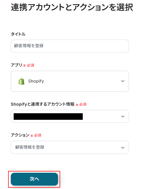 例えば顧客情報の更新を同期する場合はステップ3のトリガーを「Customer Updated」に、ステップ5のアクションを「顧客情報を更新」に変更してください。