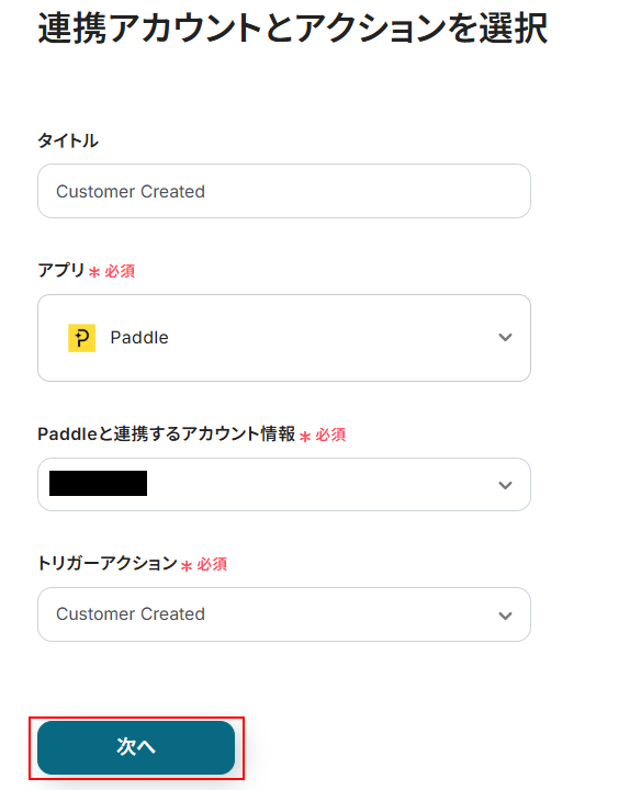 今回ご紹介するテンプレートは、PaddleでCustomerが作成されたら起動します。