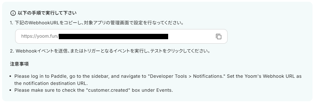 URLをコピーしたら、Paddleの画面で設定を行います。