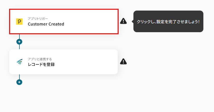先ほどの画面で「OK」をクリックして、表示された画面のアプリトリガー「Customer Created」をクリックしましょう。