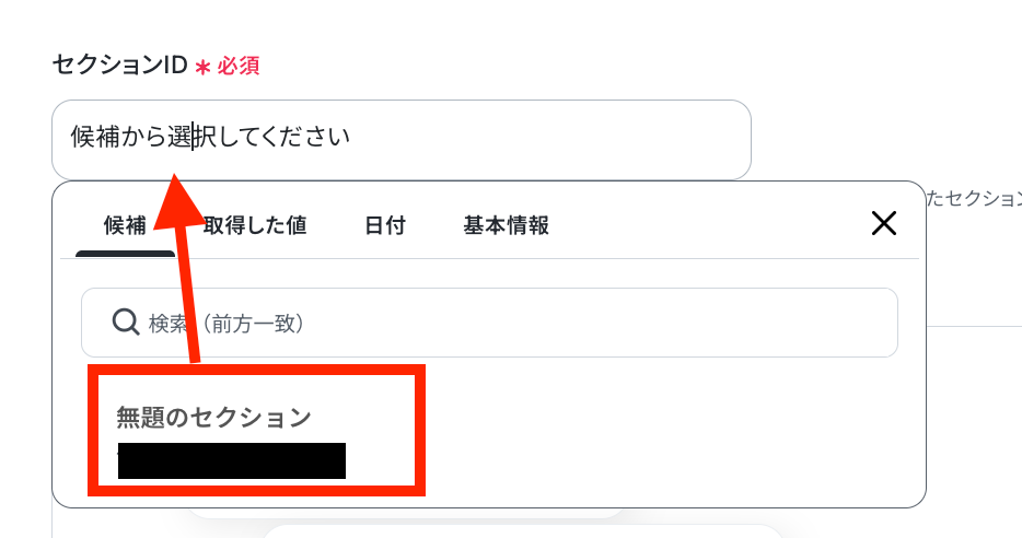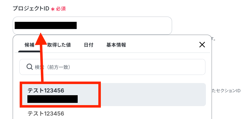 タスクを作成したいプロジェクト先のIDを、候補の中から選択して設定します。
