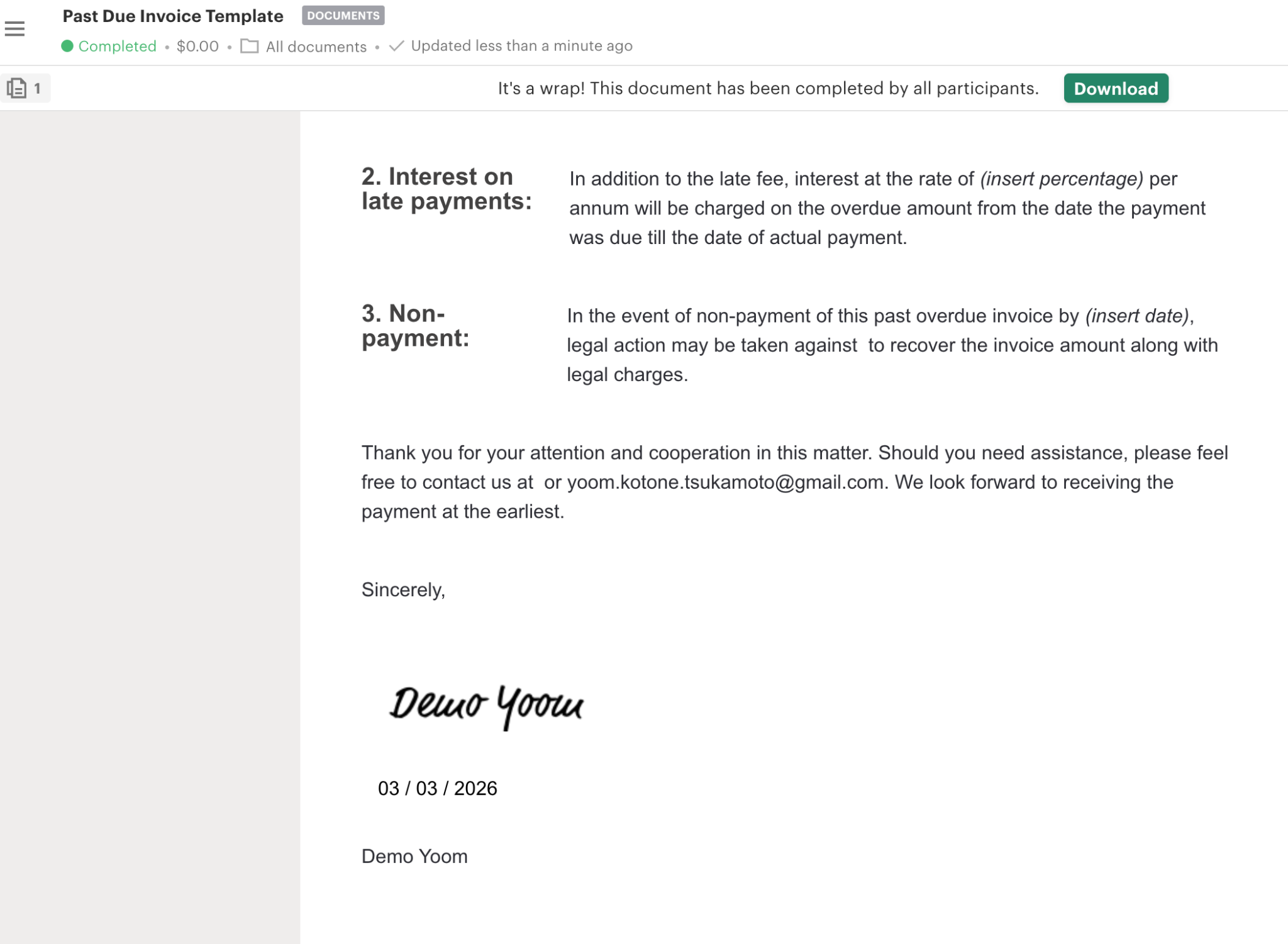 PandaDocで仮の書類を作成して、トリガーとなる署名を完了させます。